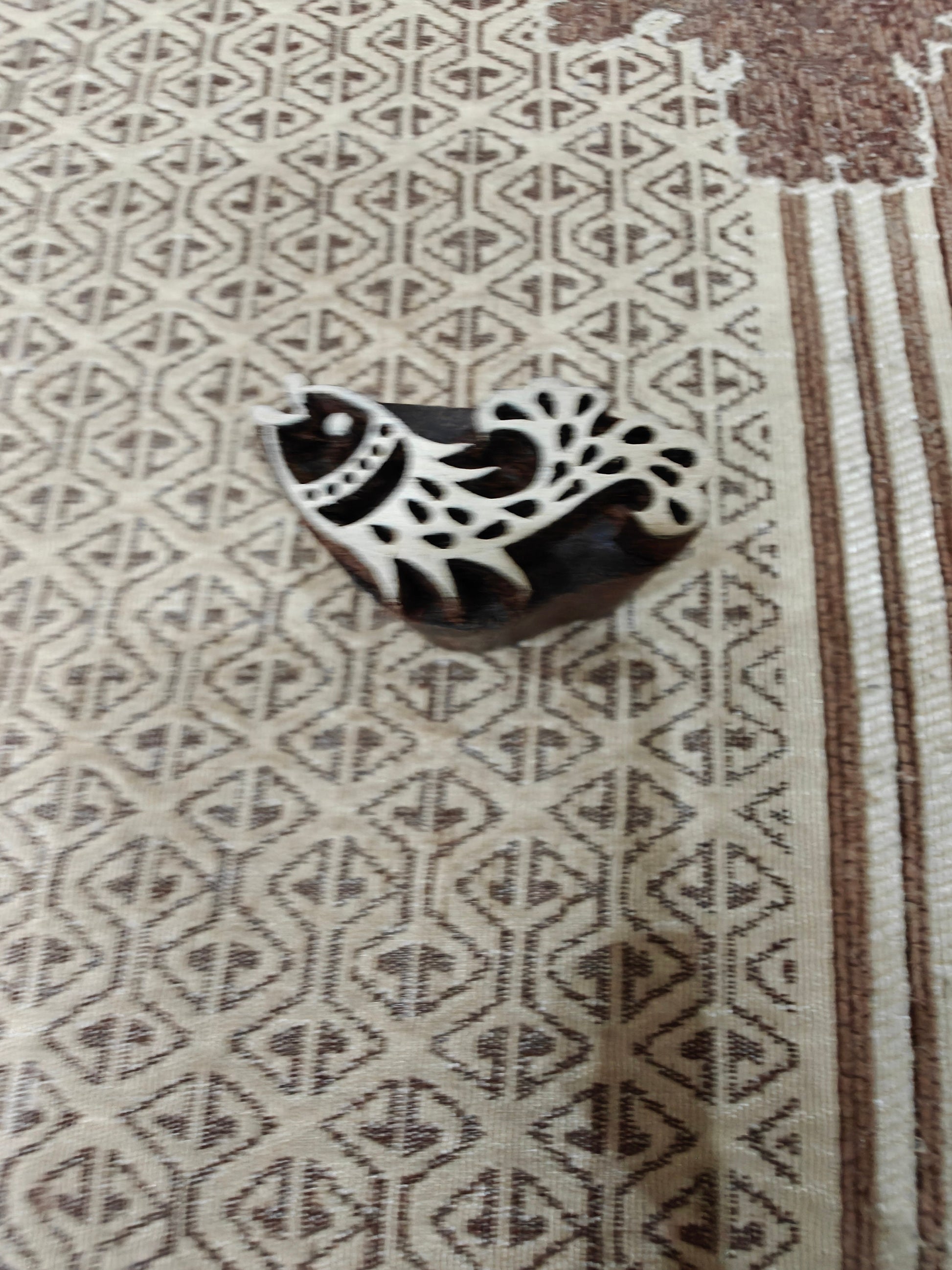 The Indian Wooden Printing Block - A jumping fish is an enchanting and delicately crafted tool used in the traditional art of block printing in India. Skillfully handcrafted from high-quality wood, this block features a captivating design inspired by the intricate and graceful jumping fish